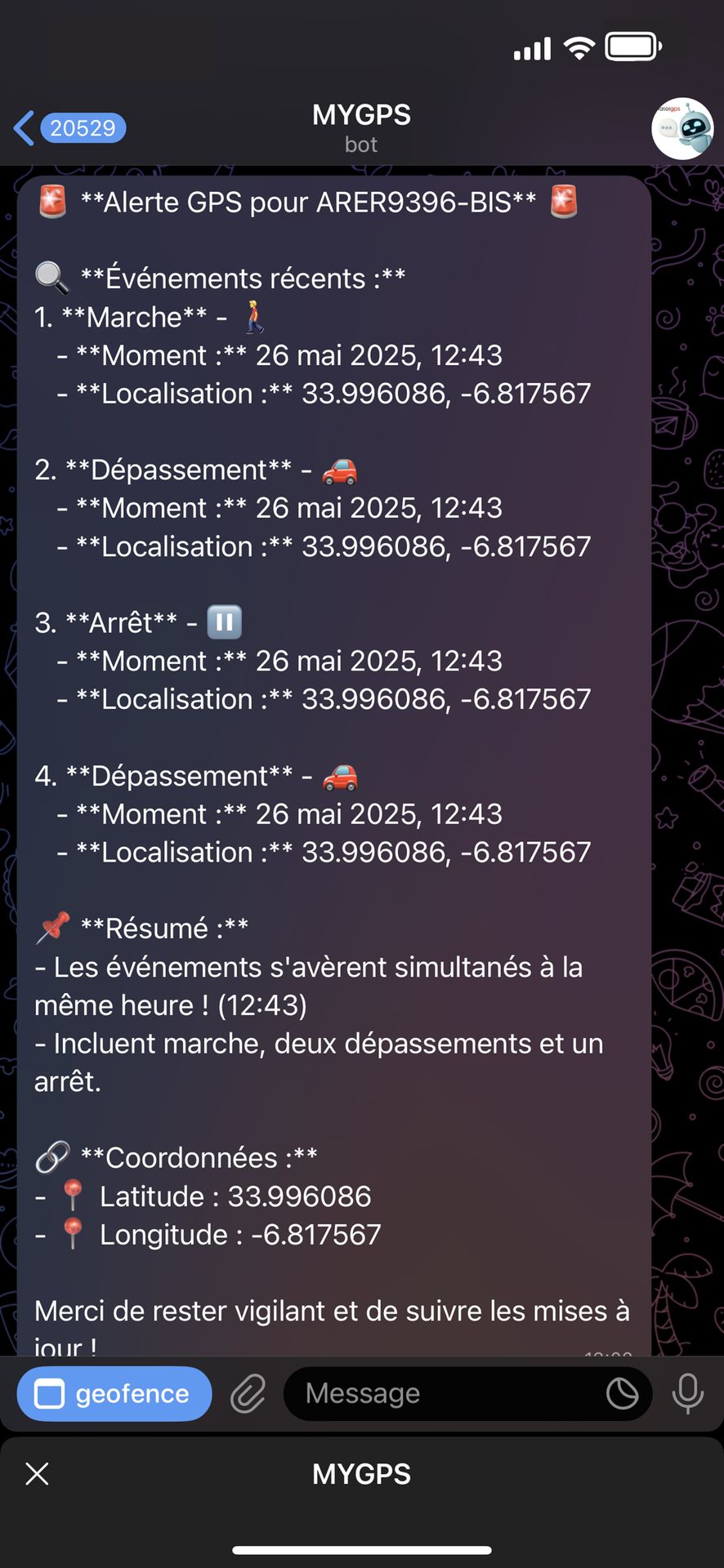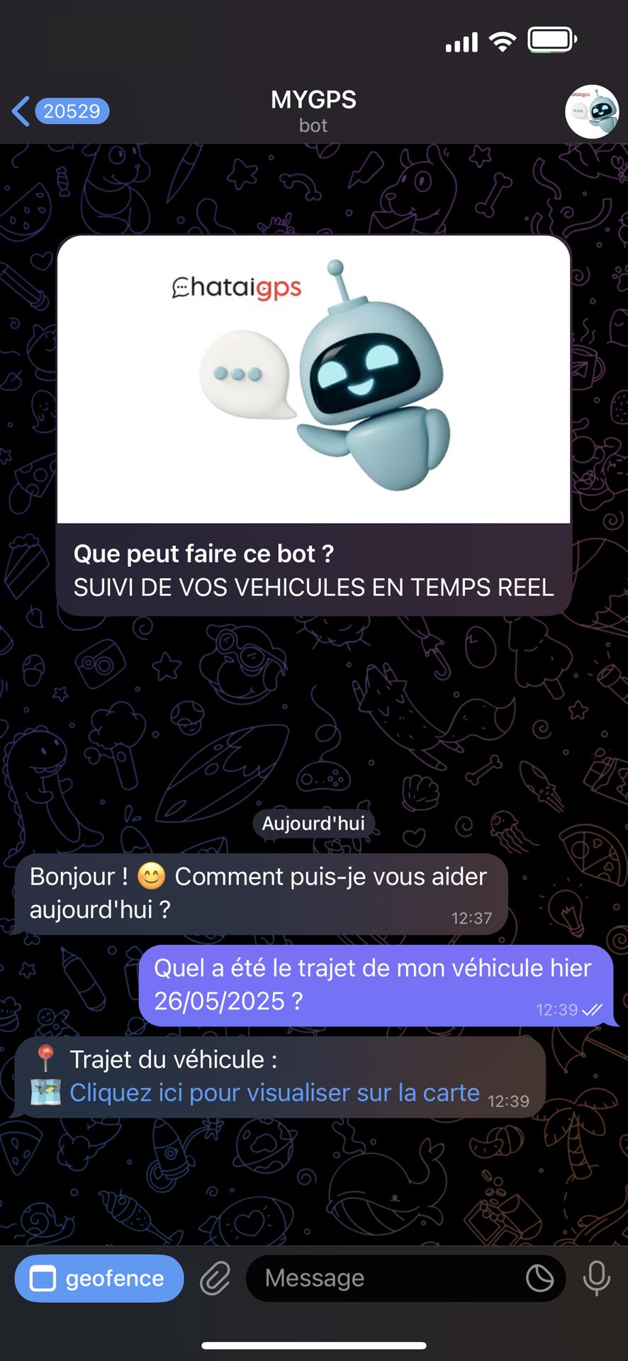 Oui, c’est tout à fait possible ! Pour la gestion d’une flotte de véhicules, nous pouvons créer un groupe sur WhatsApp  ou Telegram ou toute autre plateforme de messagerie. Chaque véhicule y sera représenté comme un membre distinct. Vous pourrez ainsi poser des questions spécifiques à chaque véhicule ou recevoir des notifications globales pour l’ensemble de la flotte — le tout de manière simple, centralisée et intuitive.
